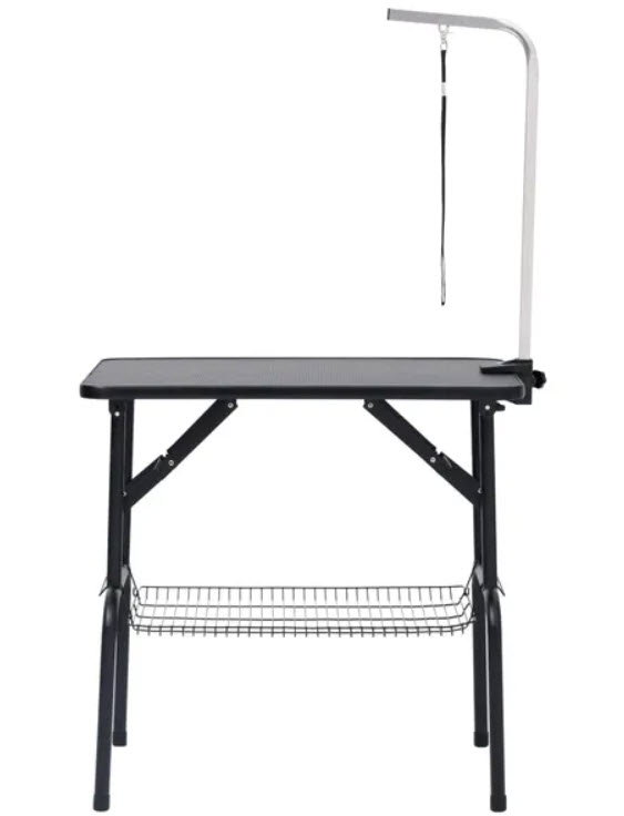 This pet grooming table is supported by steel legs, making it stable and sturdy. The large non-slip tabletop creates a comfortable surface for your pets to stand on. Additionally, the stainless steel grooming arm is height adjustable. So, you can adjust in a perfect height to suit you and your pet's size. The table is foldable, which is ideal for mobile pet groomers and home use as it is easy to store. There is a basket under the tabletop, which can be used to store pet daily items. What's more, the round corners prevent injury.