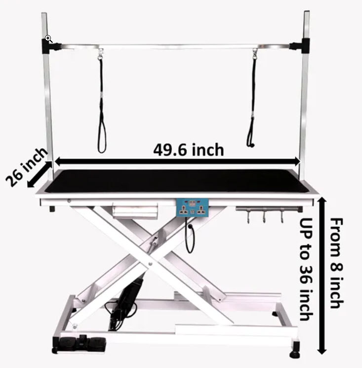 2. Professional Electric Lift X Style Durable Grooming Table is latest-designed for maximum comfort on part of the groomer. The base structure is made of steel and is an X-style frame designed for wider lifting range, lifting the table from a short height of 8" to a staggering 36" in a matter of seco