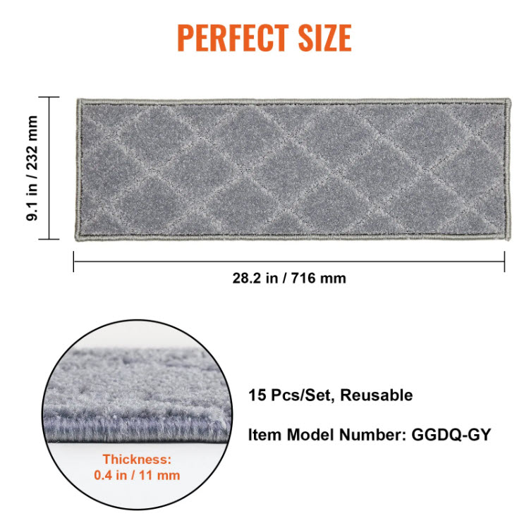 5. Perfect Size: The 15 pieces of carpet runners for stairs are sized at 28" x 9", making them suitable for most standard stairs. These anti-slip stair treads can be easily adhered to wood, tile, stone, metal, and even glass stairs, providing the necessary foot traction. Enjoy all around protection and ultimate comfort in your home.